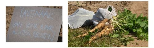 Een vrouw en haar dochter komen langs om nog wat boerenkool te plukken en wat wortelen en pastinaak te oogsten. Wat ziet zij als de voordelen van een CSA? “Het is geweldig leuk om je eigen groenten te oogsten samen met je kinderen, verser dan dit wordt het niet. Het is ook fijn om te weten waar je eten vandaan komt. In de zomer staat het hier helemaal vol met groenten en heb je ongelooflijk veel keus. Ook neem je precies hoeveel je nodig hebt: gedaan met de overschotjes! Je eet altijd mee met de seizoenen, dat vind ik ook een troef.”